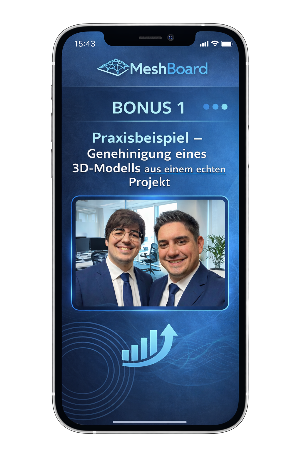 In diesem Bonus siehst Du anhand eines realistischen Praxisbeispiels, wie ein 3D-Modell vor und nach einer sauberen Genehmigungsstruktur aussieht.